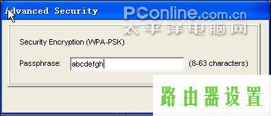 在挑选WPA-PSK(Wi-Fi Protected Access Pre-Shared Key),随后在Passphrase键入密匙,此类键入:abcdefgh,最少8位,较大 63位。